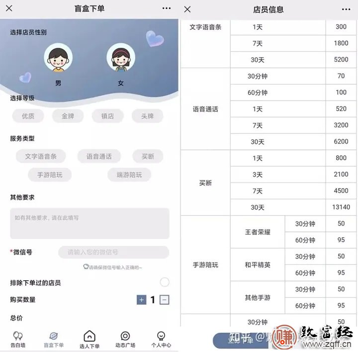通过图片大家能看出来,他是一个做服务方向的账号,就是通过主营虚拟恋人变现。 这意味着用户可以花钱收获陪伴的快乐,这门生意如今在抖音特别火,需求主要都来自年轻人。它的成因,倒不是图新鲜,是当代人的普遍孤独现状。 生活的压力一定程度上限制了人们的情感需求,而虚拟社交不但成了最好的减压阀,也成了新的市场环境下衍生出来的一种新商机。 这个账号是通过视频引导,让客户留存于公众号,然后再通过公众号销售服务,服务包括但不限于:虚拟恋人、游戏陪玩、哄睡叫醒、人工监督、点歌服务、男/女德经等。 价格还不低,聊天半个小时还要40-100元不等。 进入其公众号后,发现他是采用小程序的模式,对接上了一个互动的平台,也有可能是他们自己内部做的一个小程序。